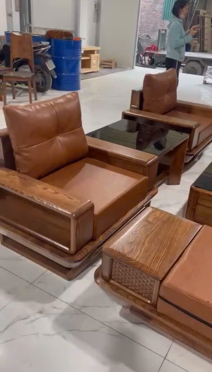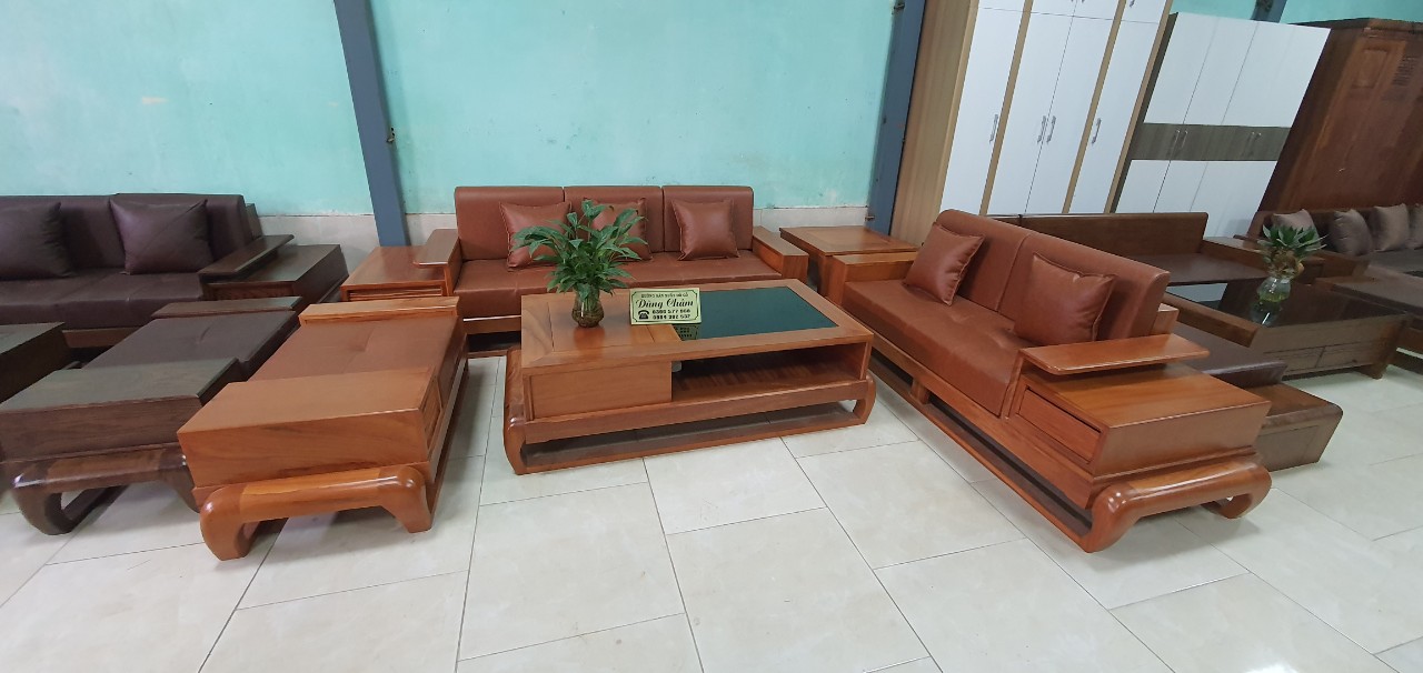 Bàn ghế phòng khách sofa gỗ sồi hàng đại dày 2 lớp