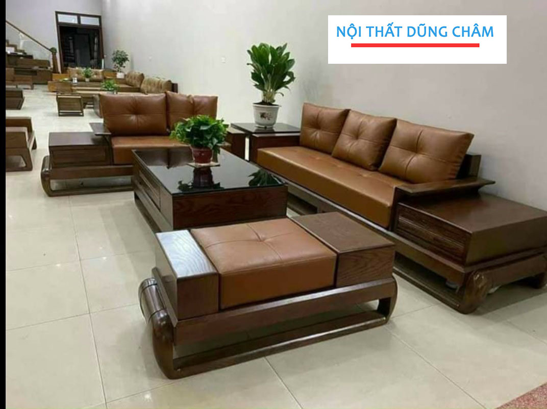 Bộ bàn ghế sofa gỗ phòng khách gỗ sồi lau màu óc chó