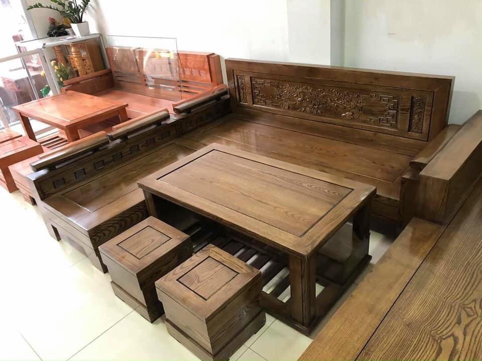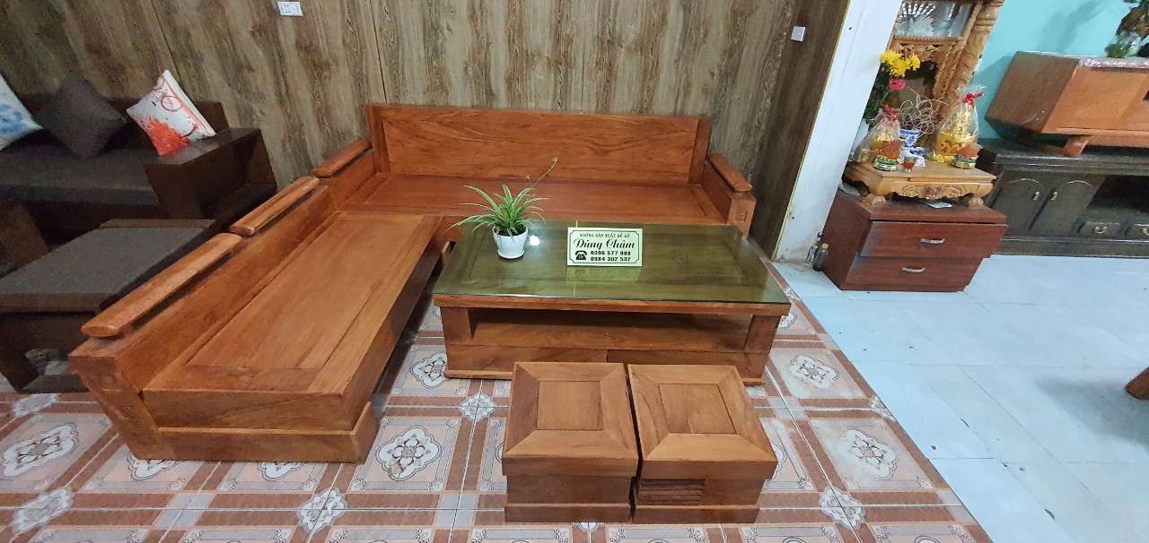 Bộ bàn ghế gỗ tự nhiên sofa góc trứng gỗ gõ cao cấp