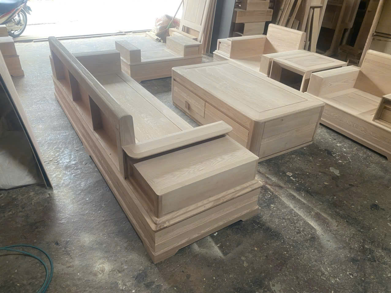 Sofa phòng khách gỗ sồi cao cấp tự nhiên giá rẻ mới 2025
